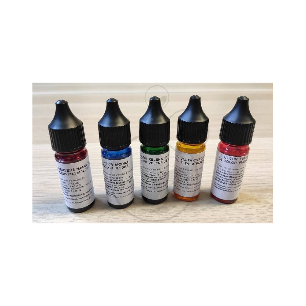 GL COLOR je koncentrovaná tekutá glycerínová farba na výrobu mydiel z glycerínových mydlových hmôt a kozmetiky - kúpeľových solí, šumivých bômb, tekutých mydiel, gélov a šampónov, pleťovej kozmetiky a pod.