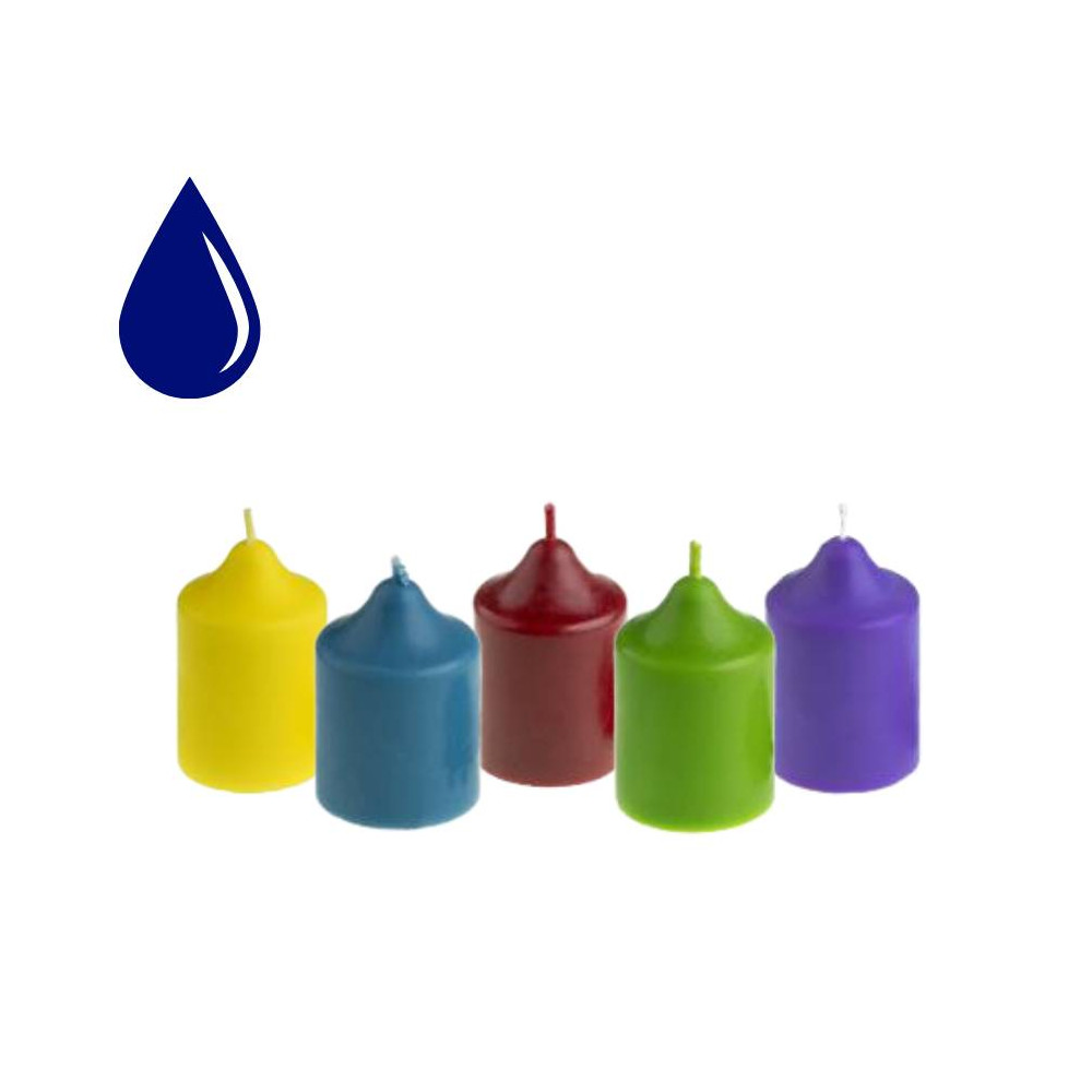 Tekutá farba vhodná do všetkých druhov vosku na výrobu sviečok (napr. do parafínu, palmového vosku, sójového vosku, kokosového vosku) a tiež sviečkového gélu.