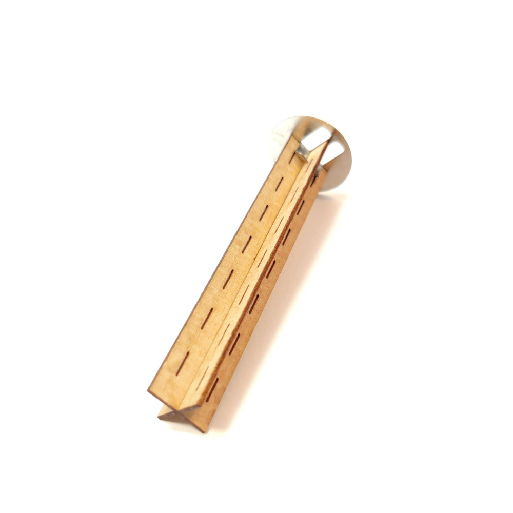 Drevený perforovaný krížový knôt do sviečok s kovovým držiakom vyrobený z prírodného bukového dreva bez impregnácie. Knôt sa skladá z 2 častí, ktoré sa zasunú do seba.