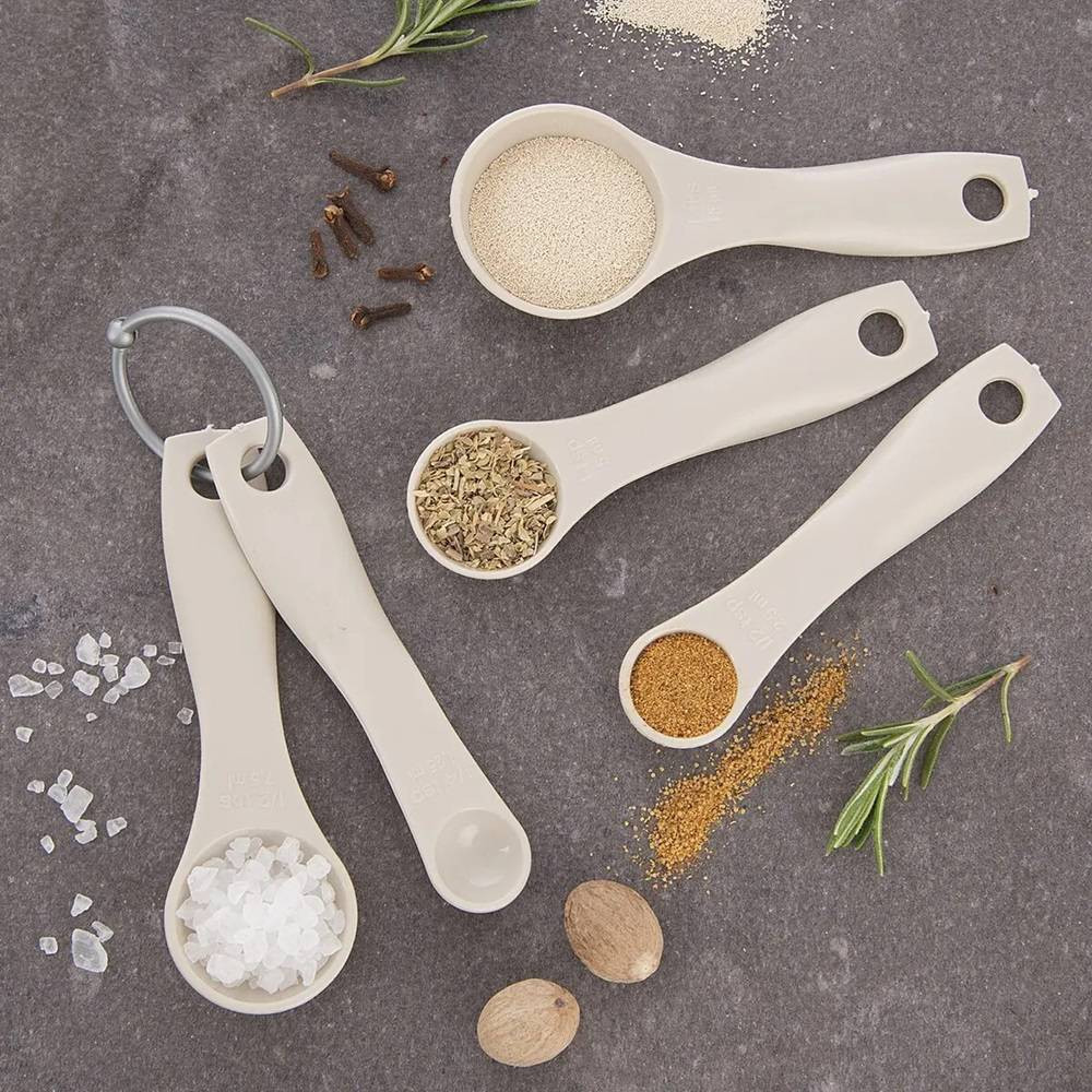 Odmerky sú zavesené na plastovom krúžku, ktorý je možné jednoducho rozpojiť a vziať z neho konkrétnu odmerku. Tiež do seba dokonale zapadajú, čo uľahčuje ich skladovanie, zaberú len minimum miesta alebo ich možno zavesiť a mať ich tak vždy po ruke. Možno umývať v umývačke.