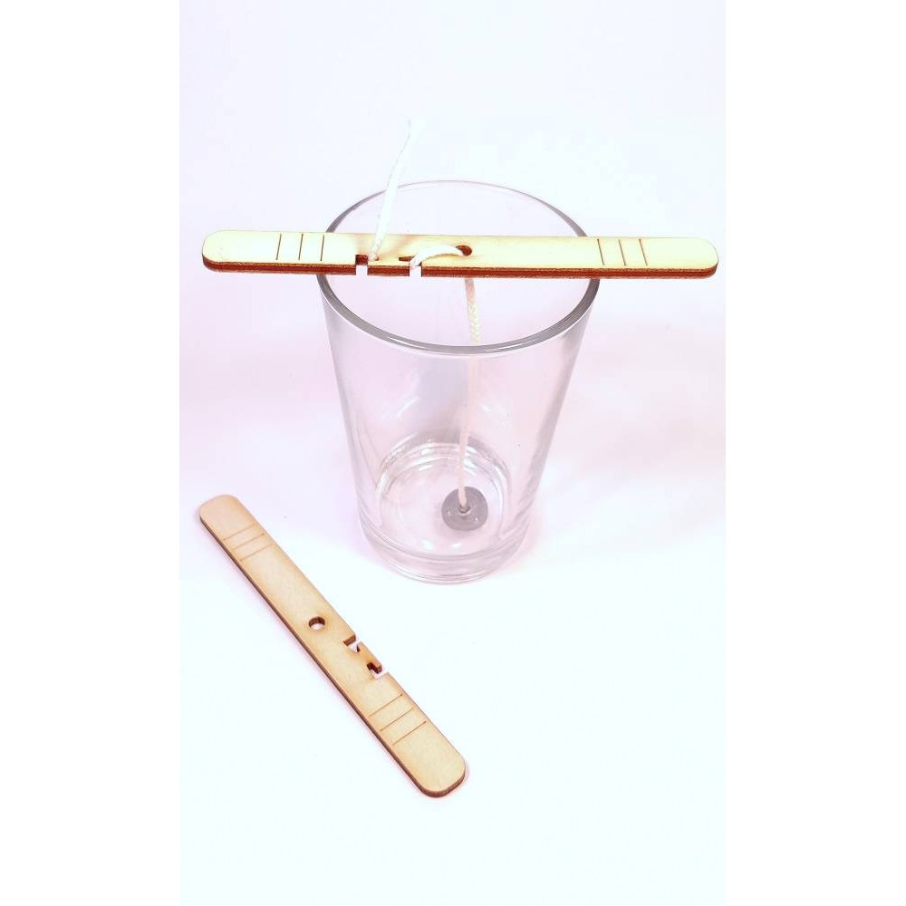 Fixátor knôtu z brezového dreva vhodný na vycentrovanie a zafixovanie knôtu pri výrobe sviečok do nádob.